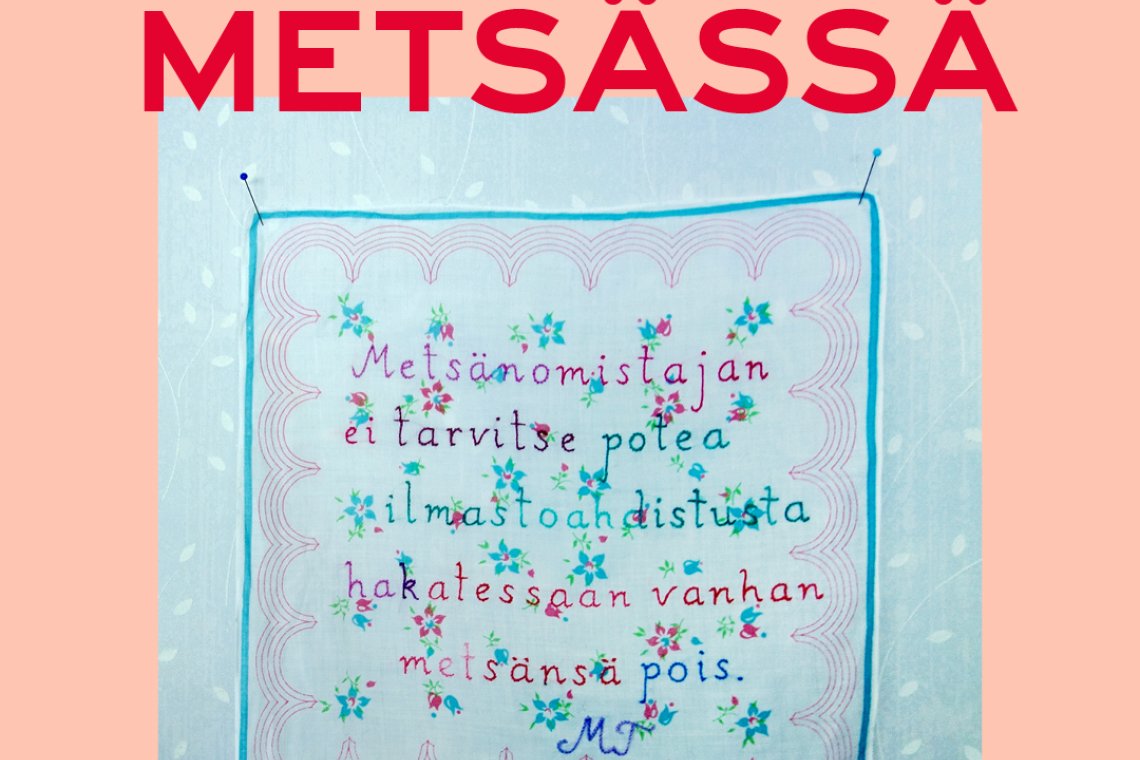 The exhibition consists of quotes collected from the Finnish forest debate and communication, embroidered as wall cloth aphorisms, endlessly repeating one truth. The time of Man, social media commentary and forest industry is fast; the time of forest, evolution and embroidery is slow.