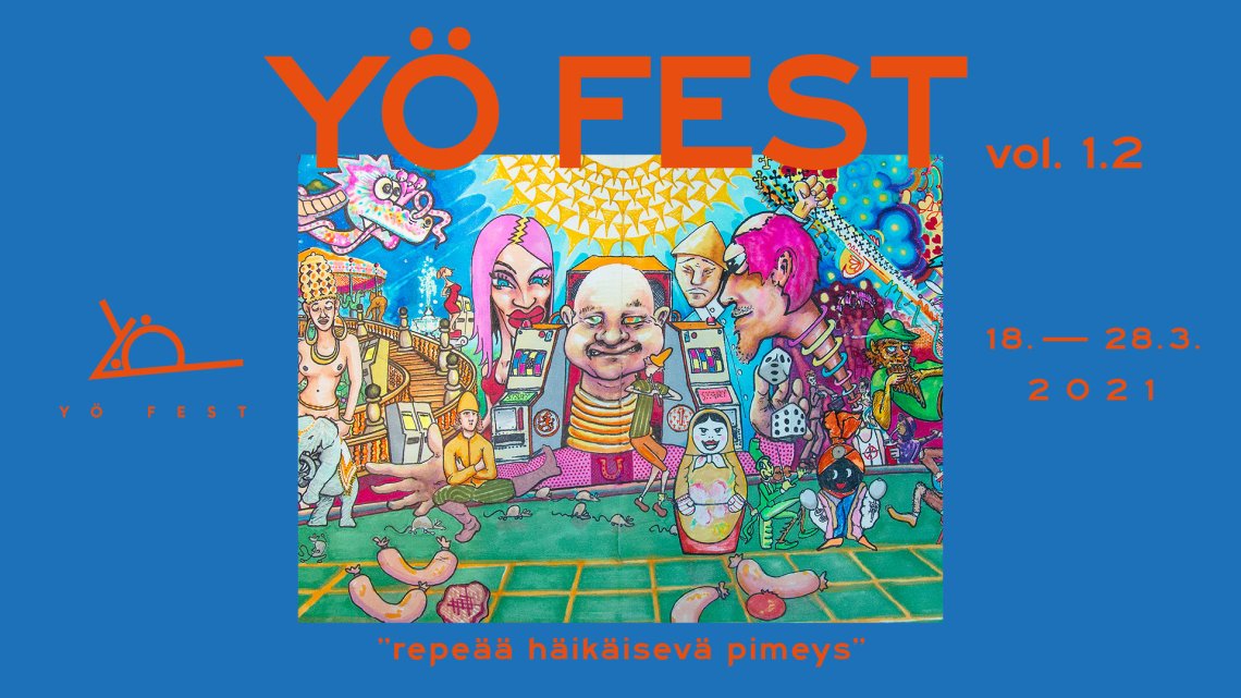 Yö Fest on neljän ryhmänäyttelyn ja lukuisien tapahtumien kokonaisuus, jossa on Yö ry:n jäsenten teoksia ja esityksiä. Yö Fest vol. 1.2 on kaksi kuukautta kestävän festivaalin toinen näyttely.