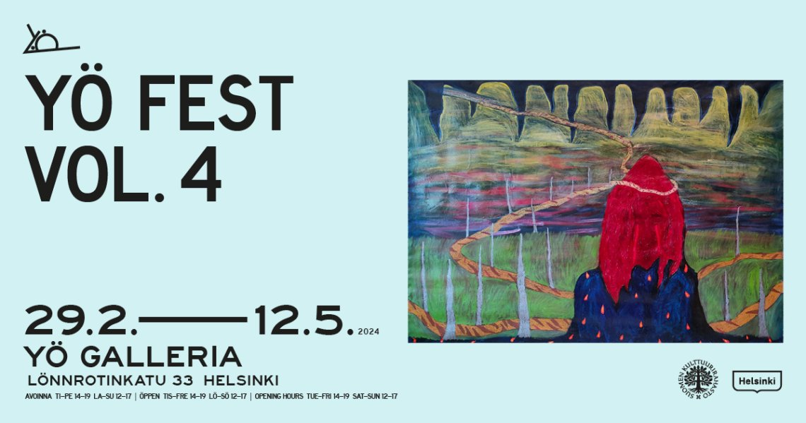 Yö Fest vol. 4 takes place between 29.2.-12.5.2024. The central location is Yö Galleria, located in the centre of Helsinki at Lönnrotinkatu 33.
