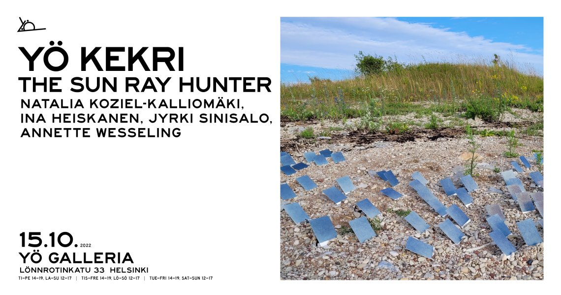 Me, Natalia Kozieł-Kalliomäki (PL/FIN) together with invited artists Iina Heiskanen (FIN), Jyrki Sinisalo (FIN) and Annette Wesseling (D) we discuss the issue of light and then share its different definitions with public at the YÖ gallery. Through our works we want to boost the connection with natural power of sun and strong beam of light to illuminate the months to come and better prepare for poorly lit Finnish winter.